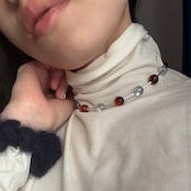 ゆったりとつけるというよりは、チョーカーのように首元に沿わせて着けられるのがポイント。