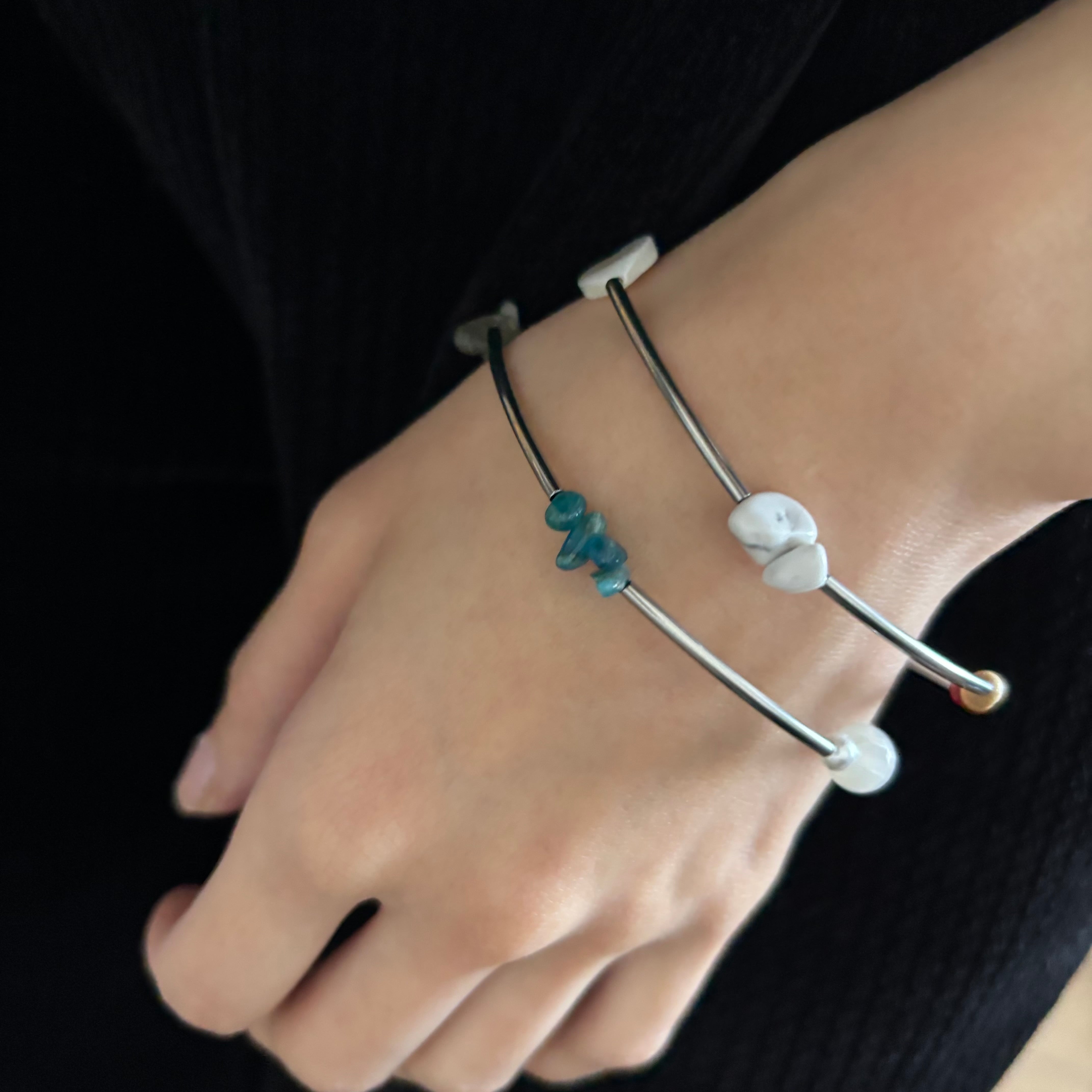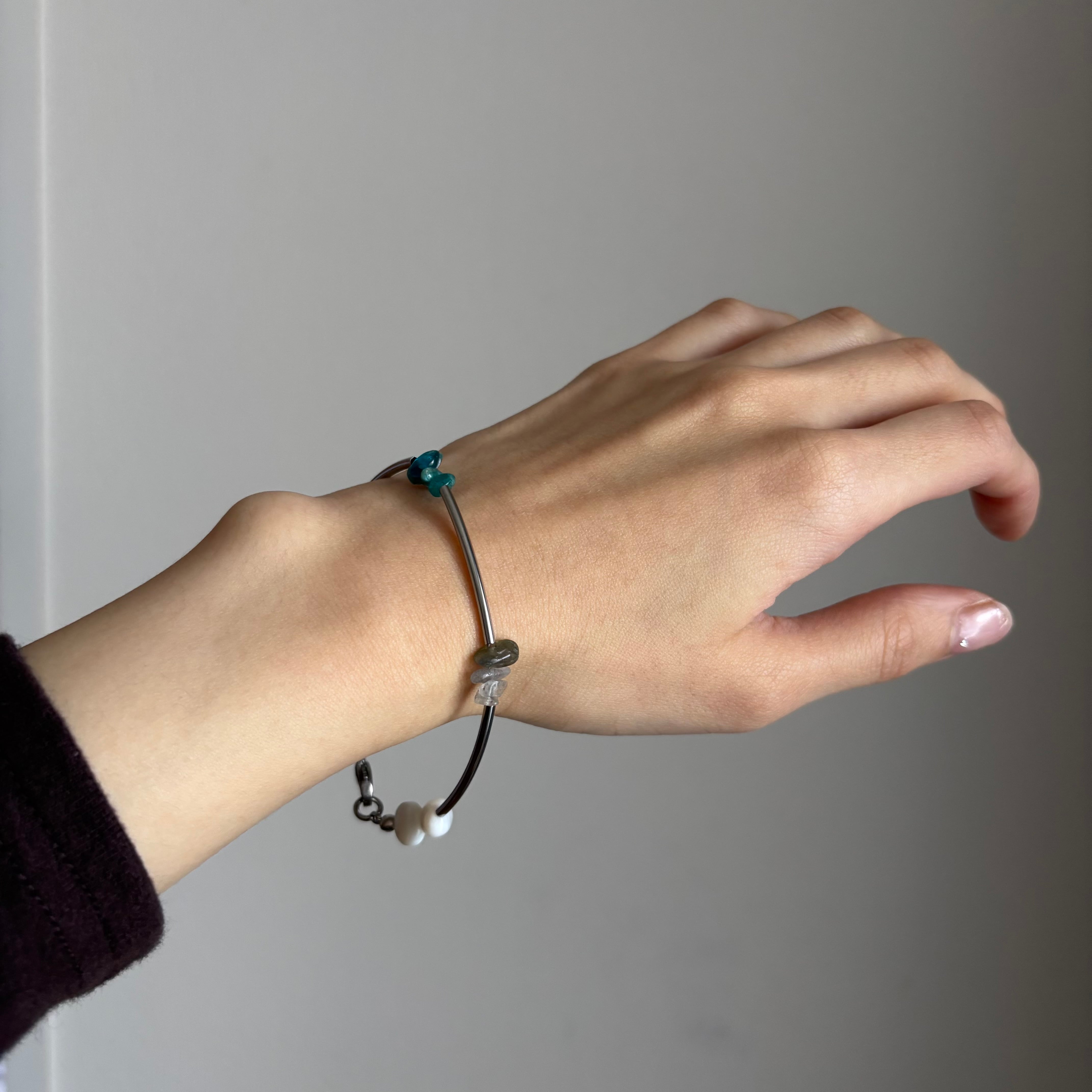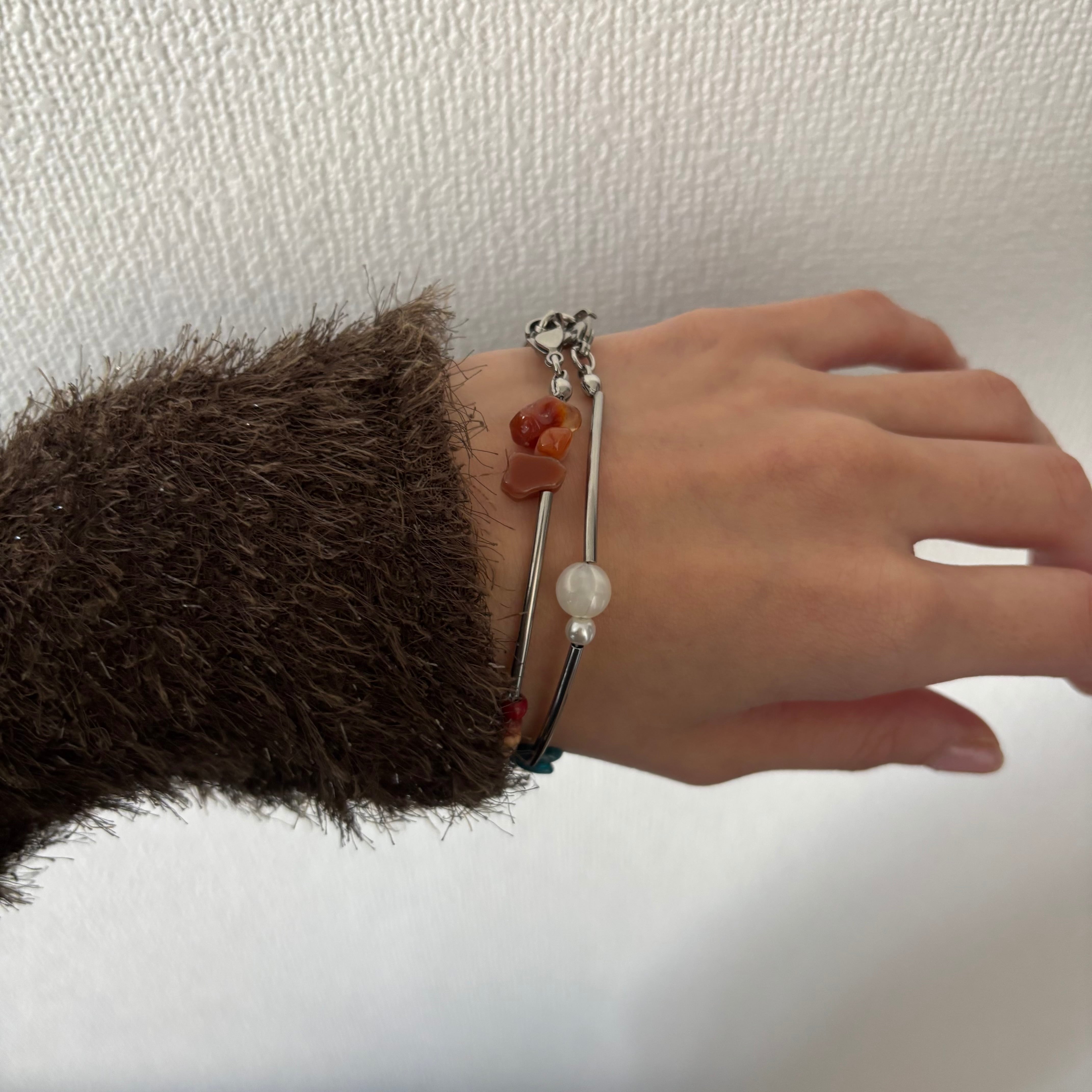 ゆとりをもったブレスレットって薄手のニットの上からでもきっと可愛い。