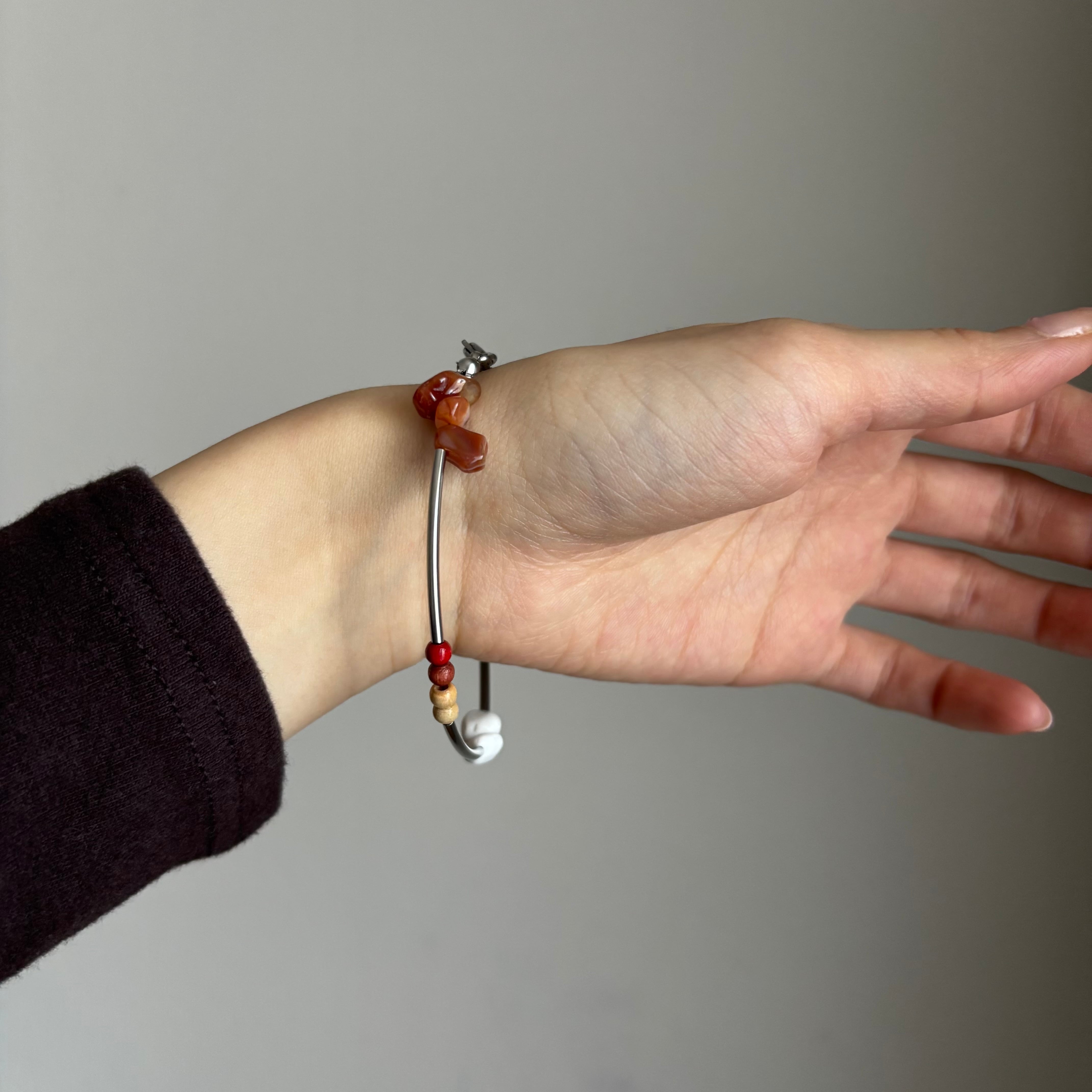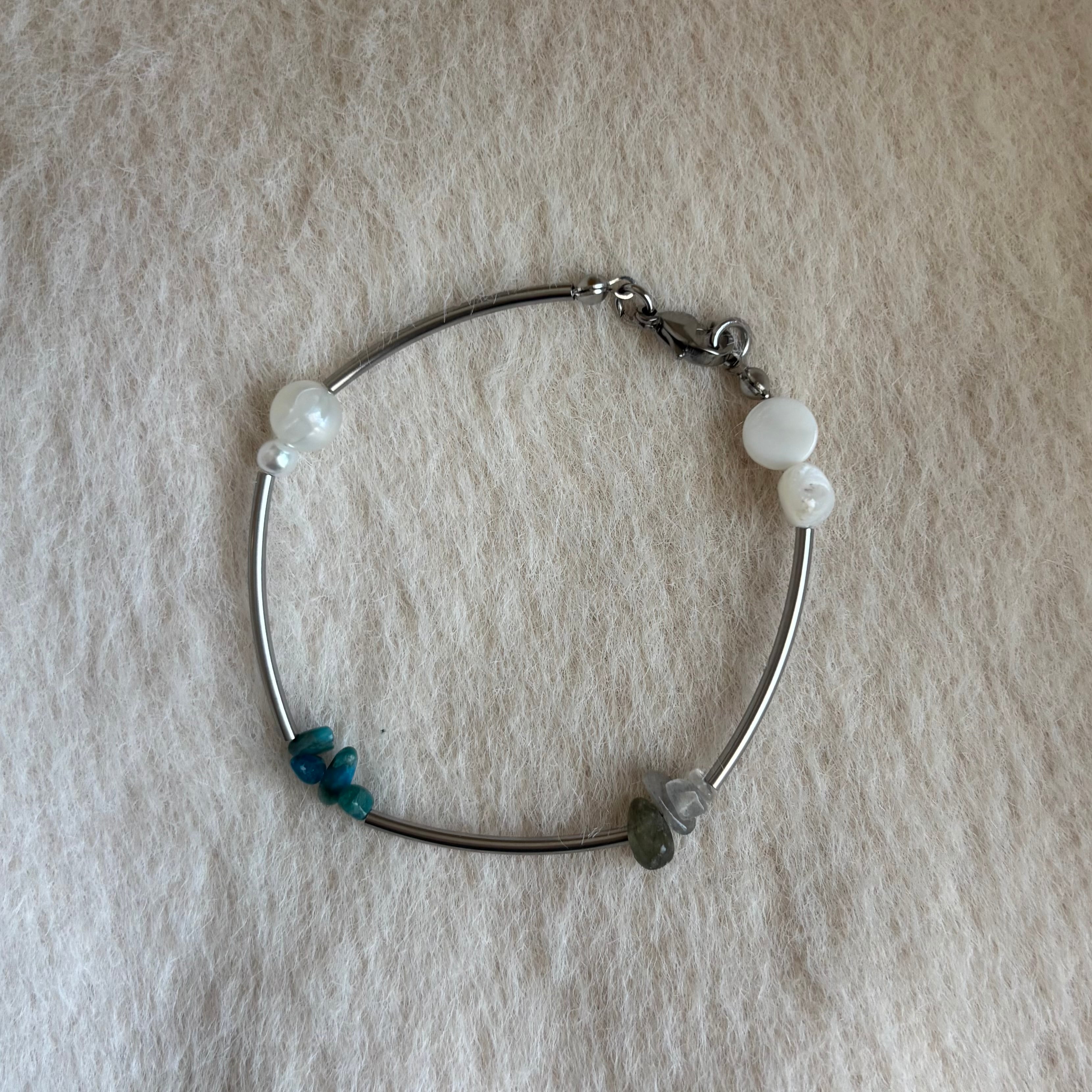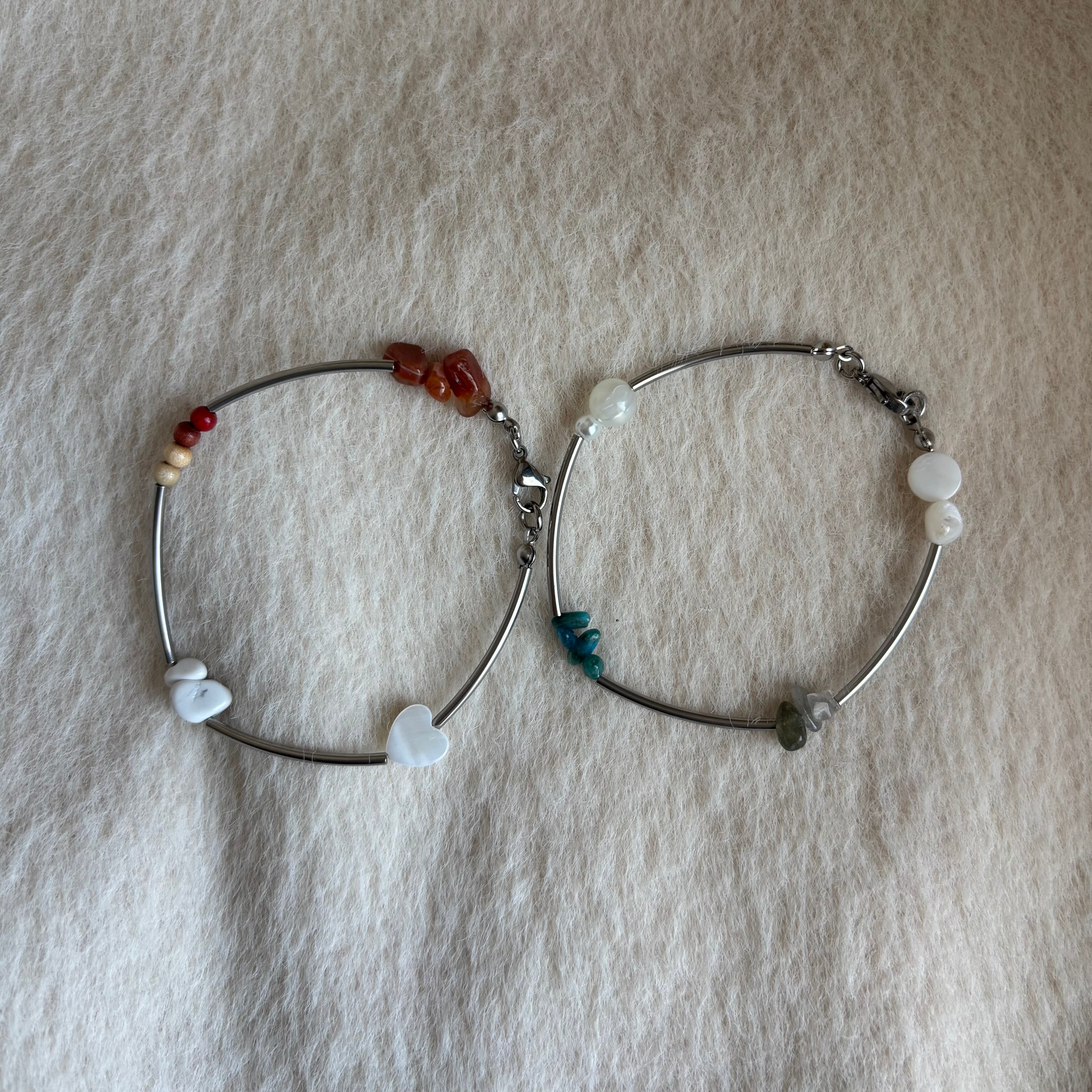 ゆとりをもったブレスレットって薄手のニットの上からでもきっと可愛い。