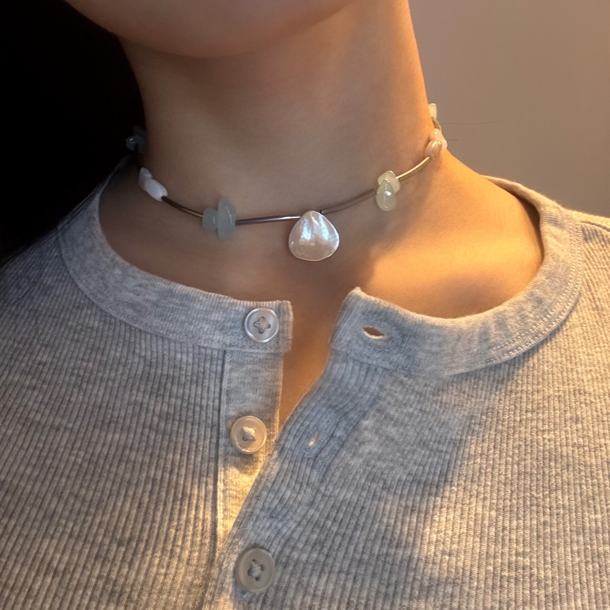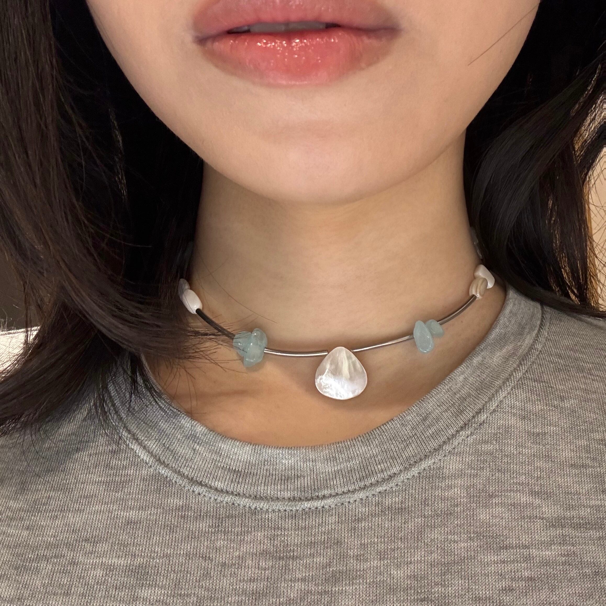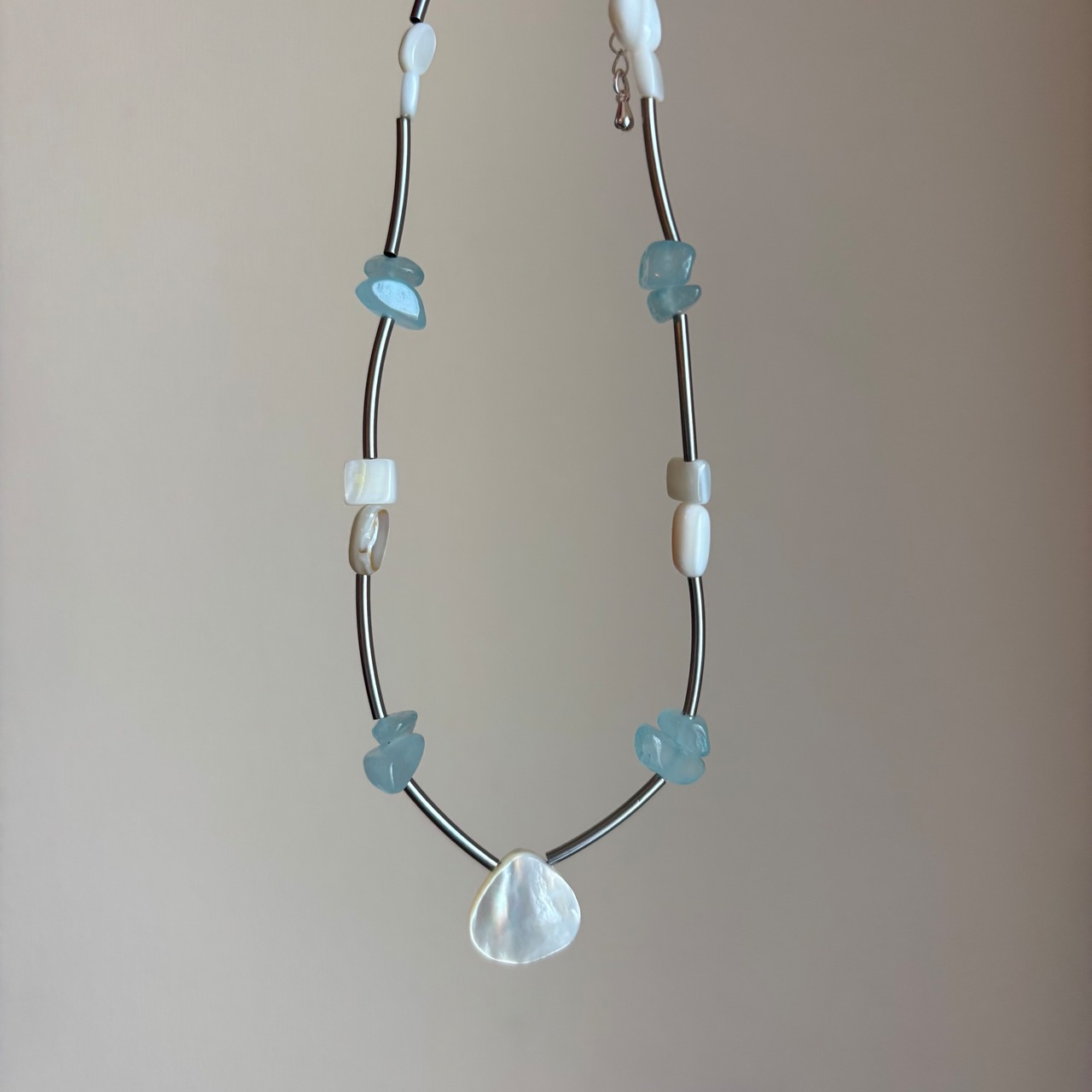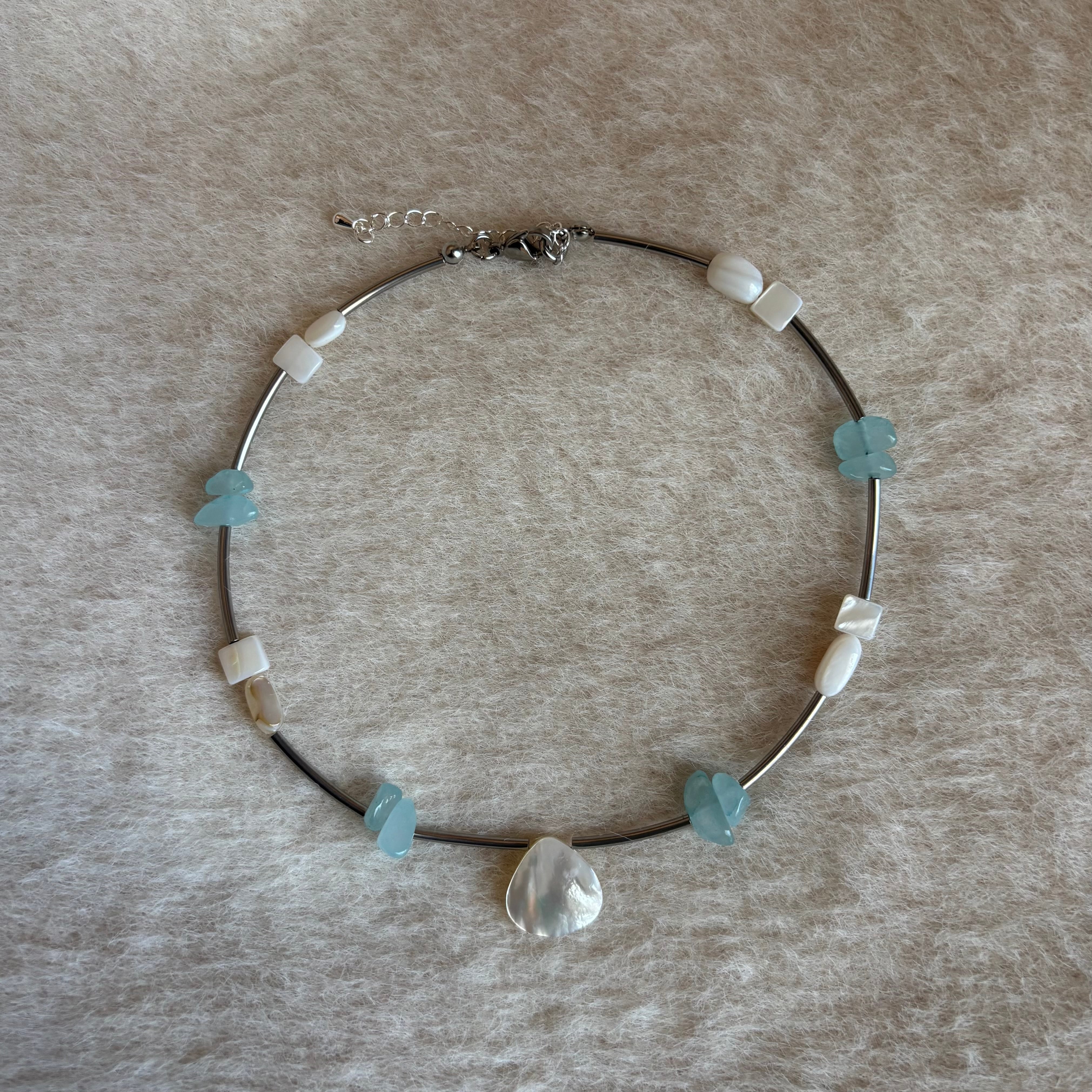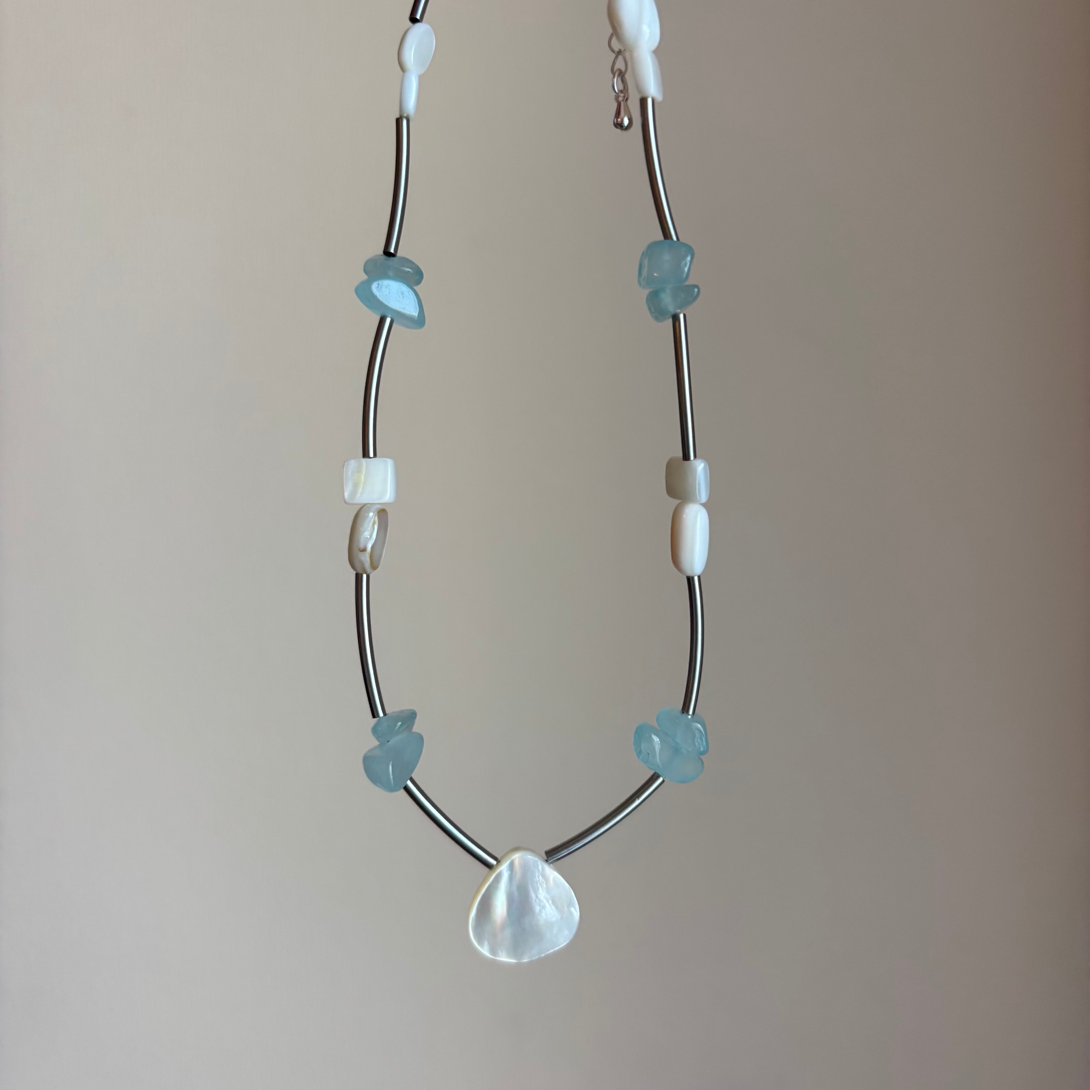 水辺のきらめきを閉じ込めたような、主役級ネックレス。
