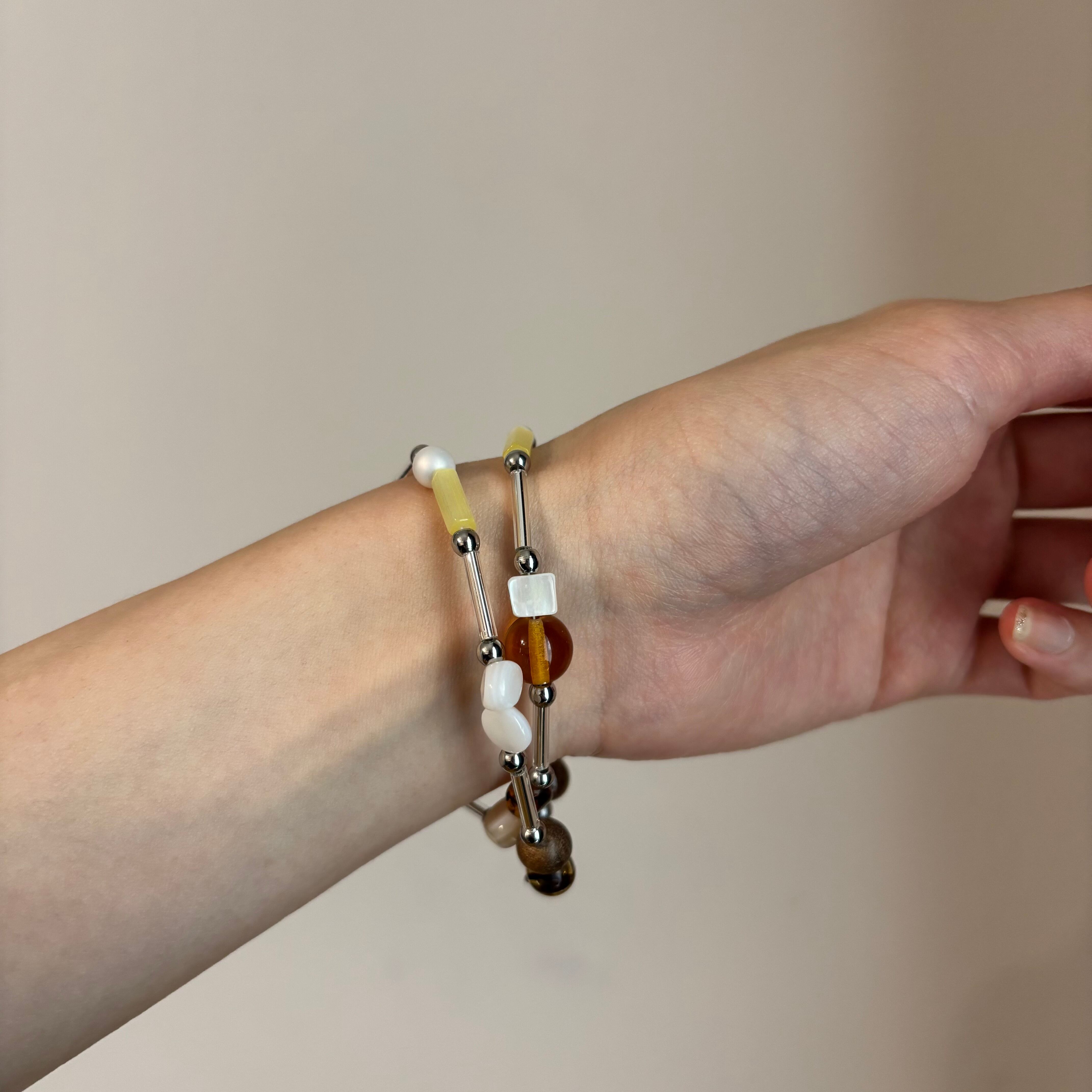 ネックレスを手首にくるっと二重に巻いてブレスレットにするのもおすすめです…♡