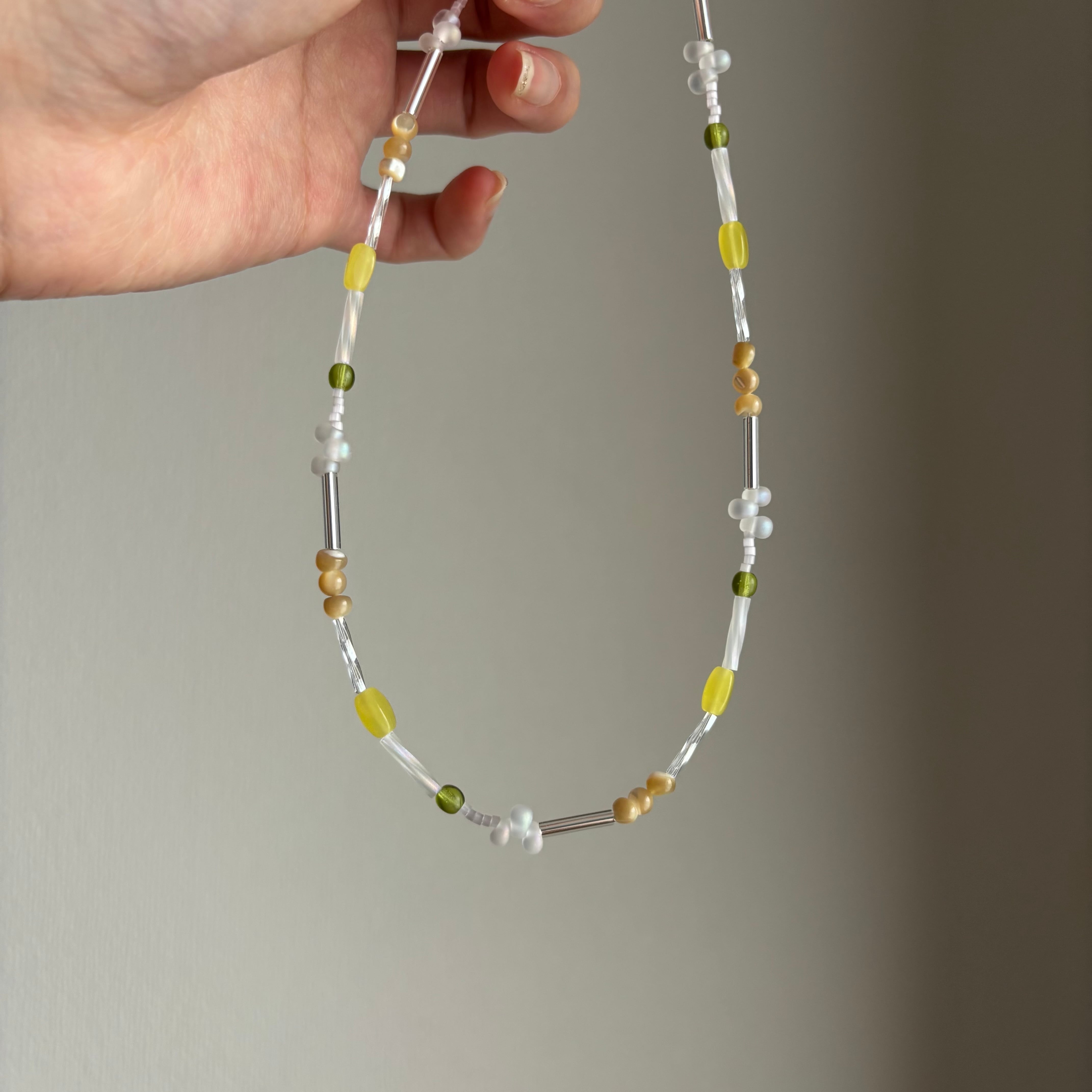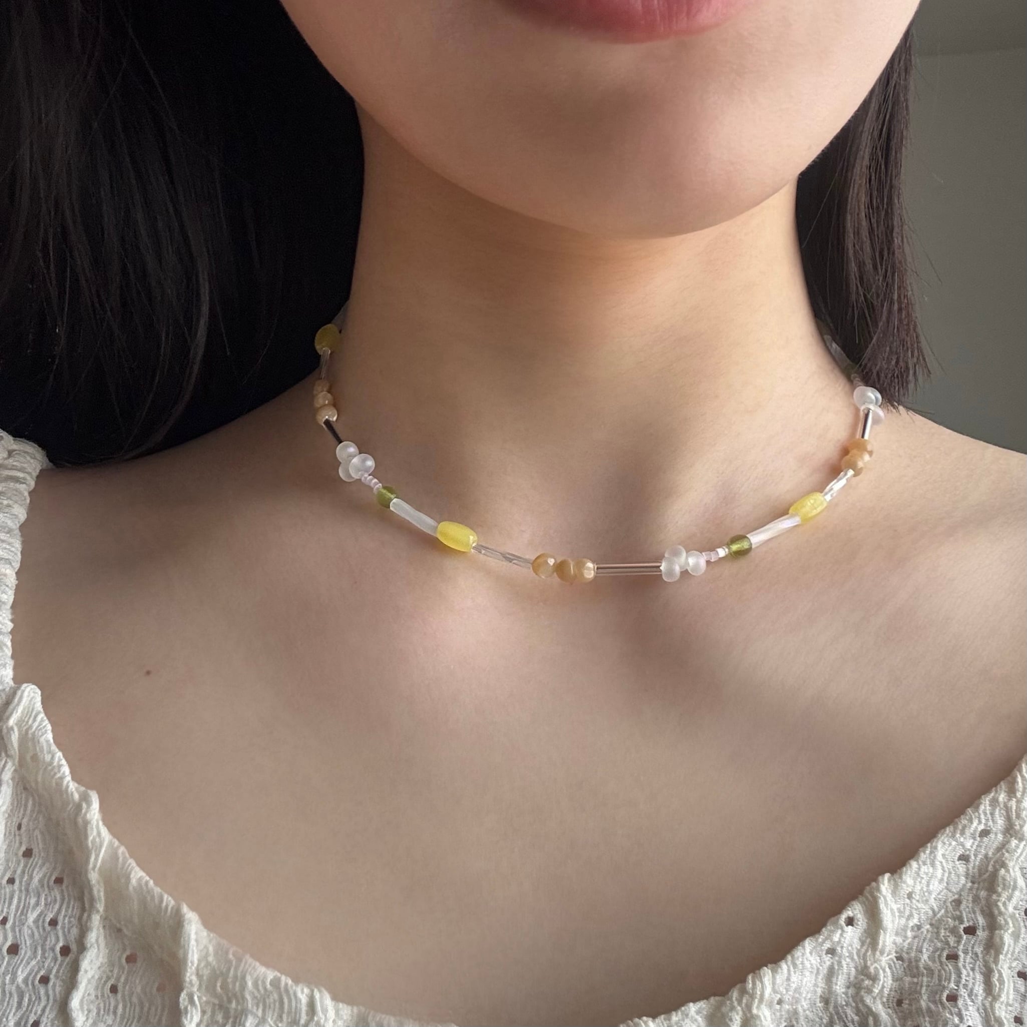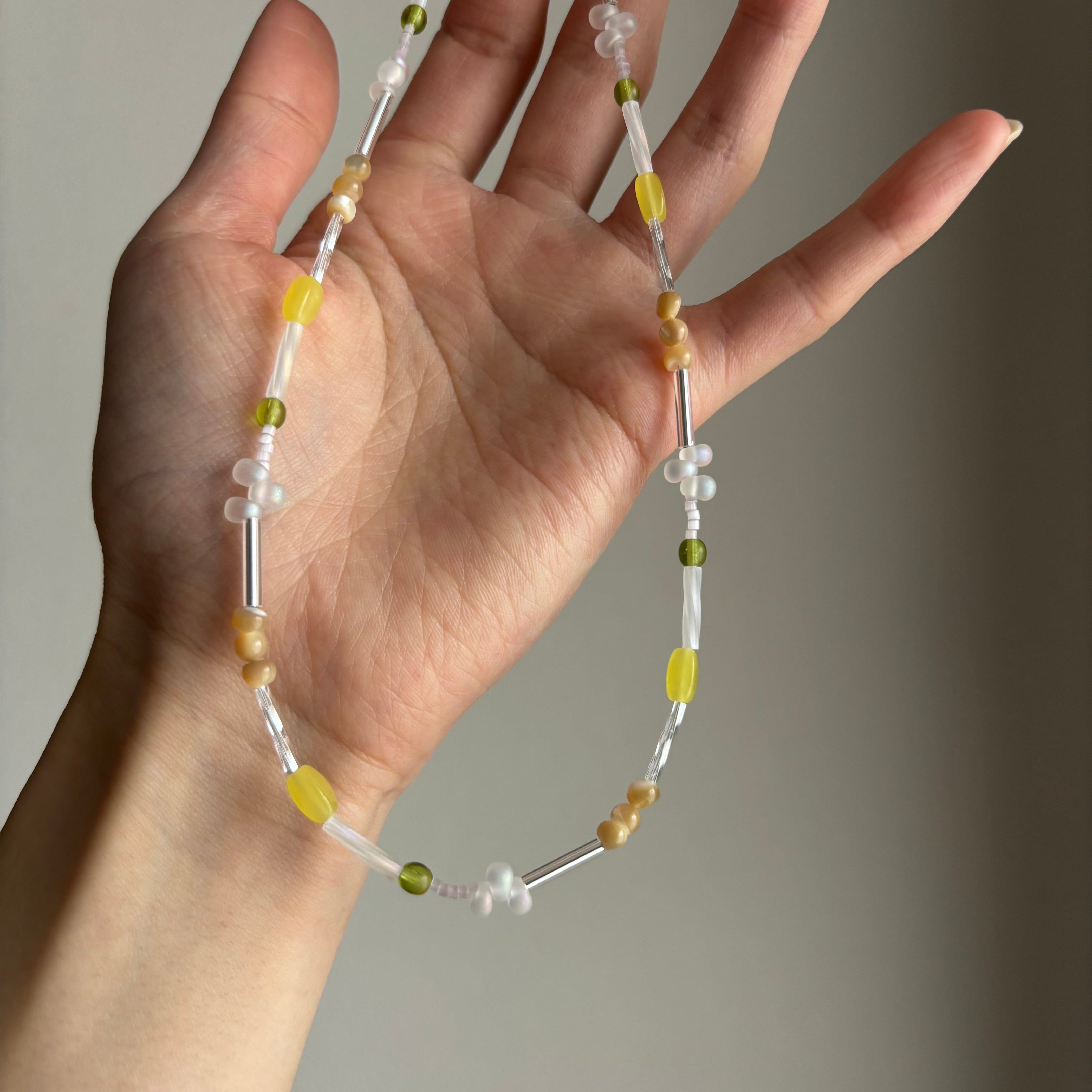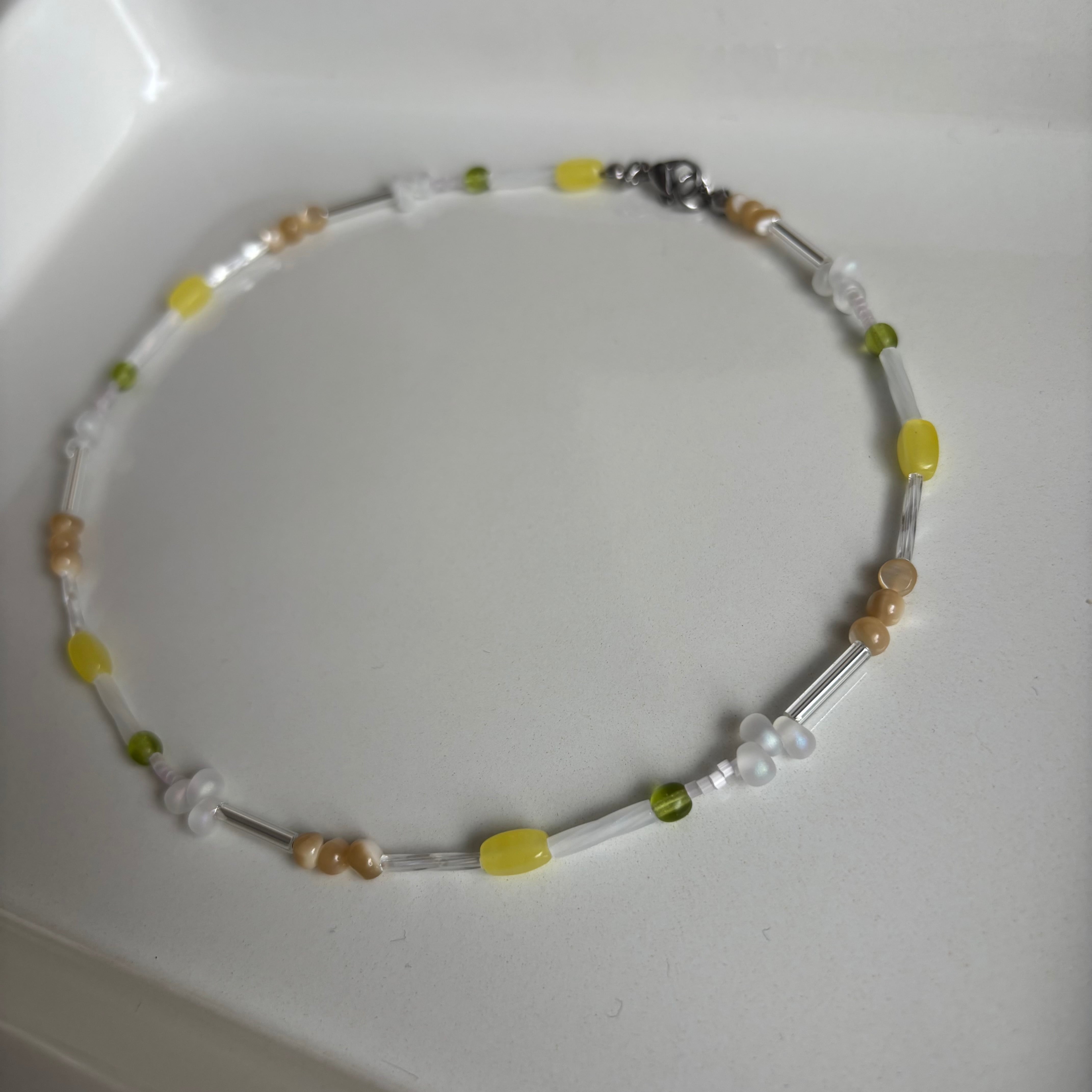 レモンライムカラーの爽やかなネックレス。