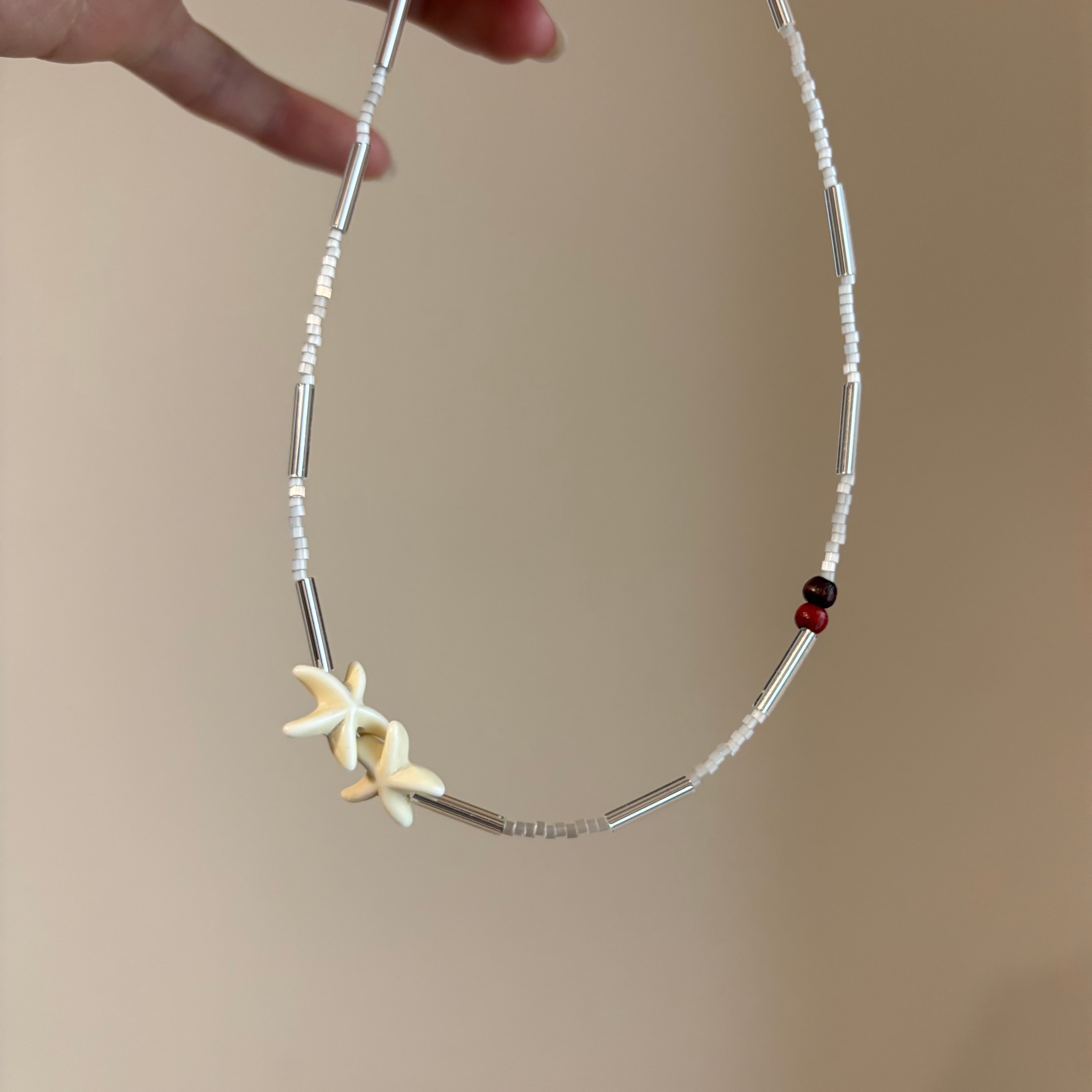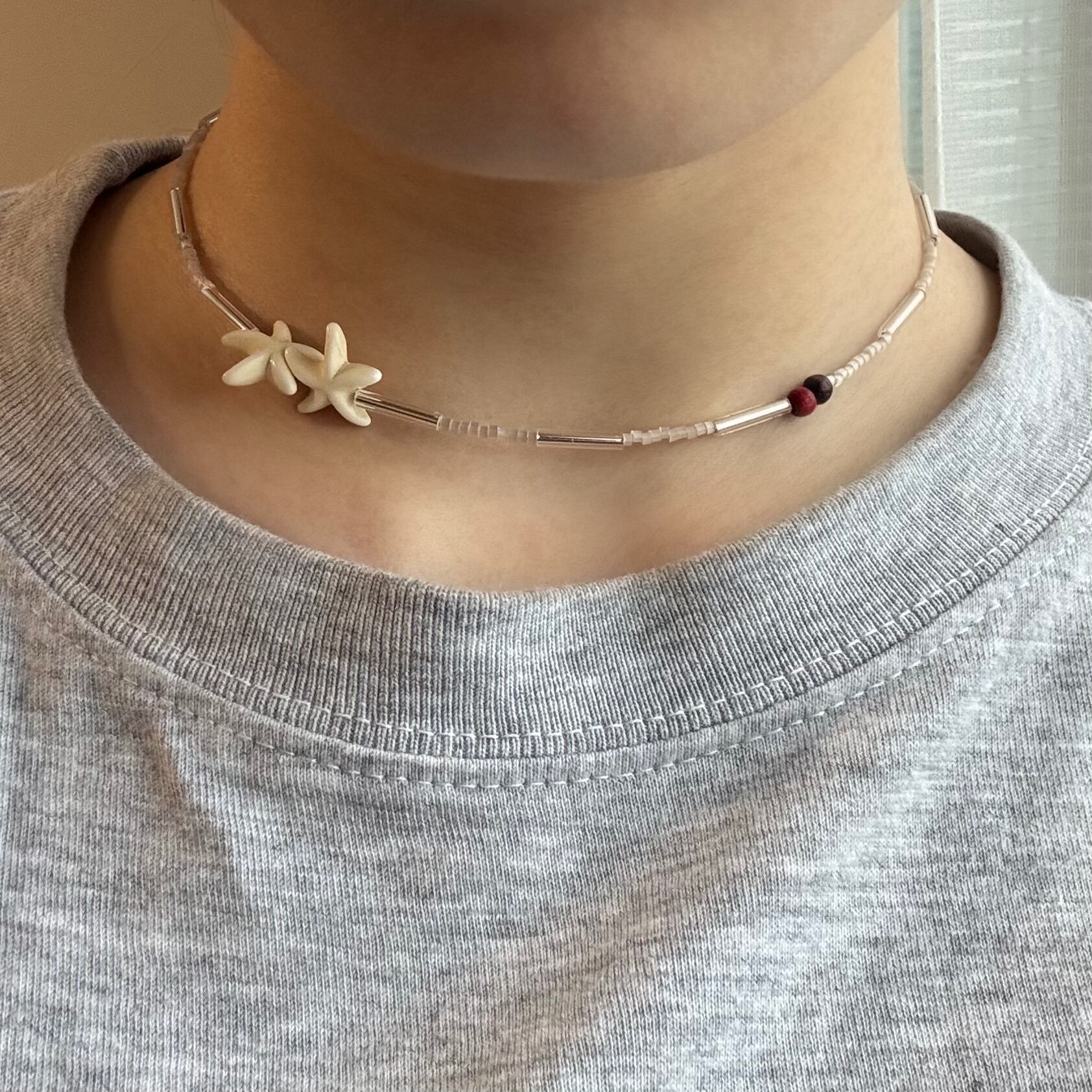 無機質なシルバーとホワイトの層で表現したモダンネックレス。