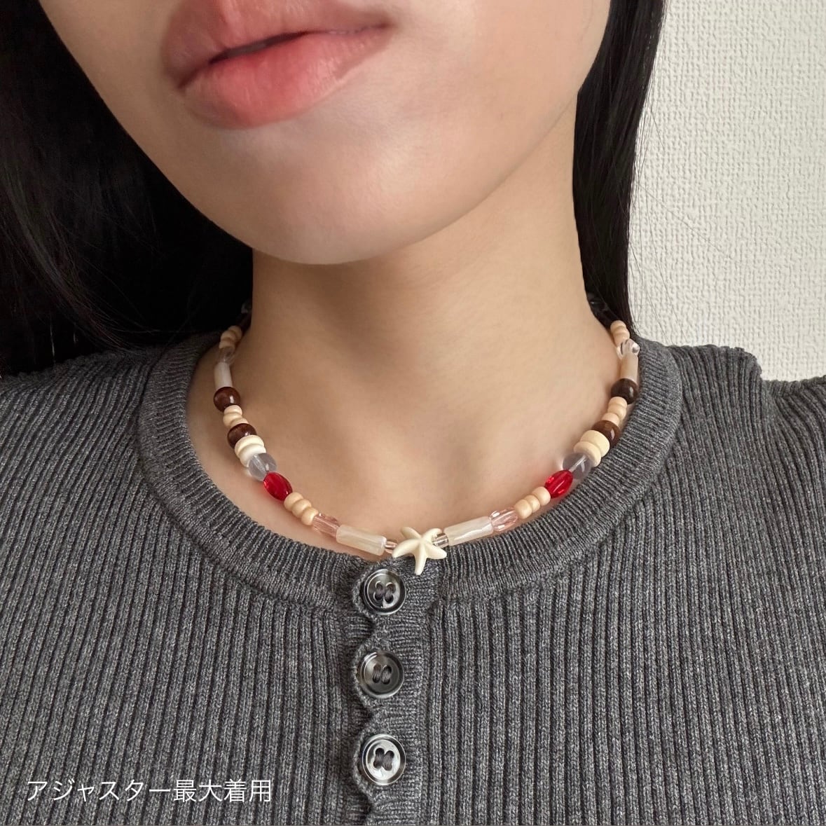 首元にフィットする作りですが、5cmのアジャスター付きなので、少しゆとりを持たせても◎